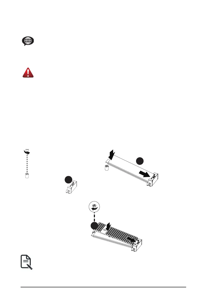 注意! 安裝 M.2 SSD / 散熱片 圖示僅參考,請依照實際購買的 M.2 SSD / 散熱片安裝步驟說明。