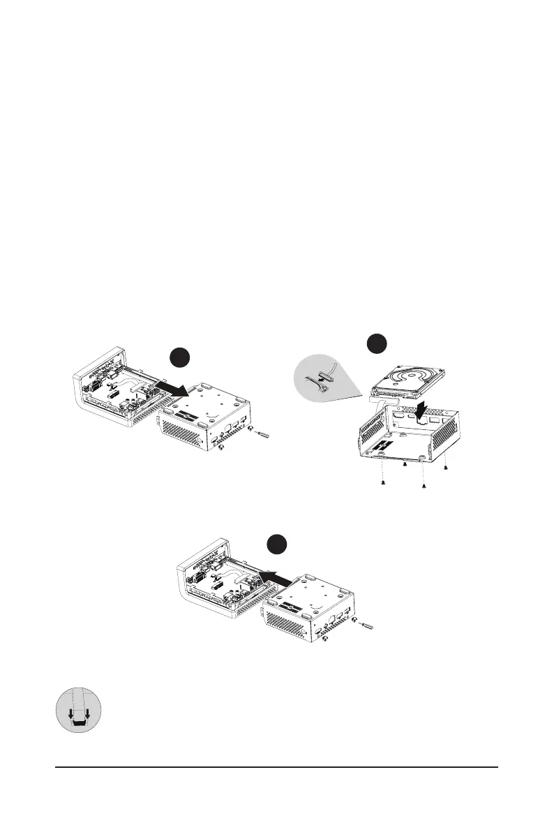 2. Install the HDD / SSD on the bottom panel and secure with four screws provided, then connect