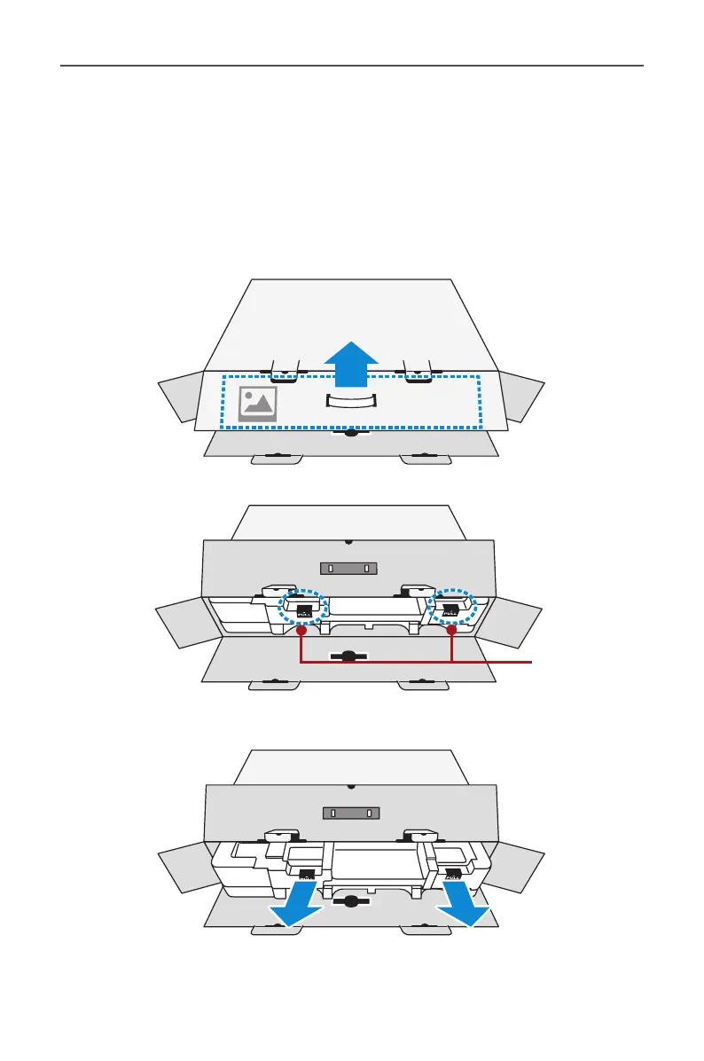 1. Open the upper cover of the packaging box. Then observe the