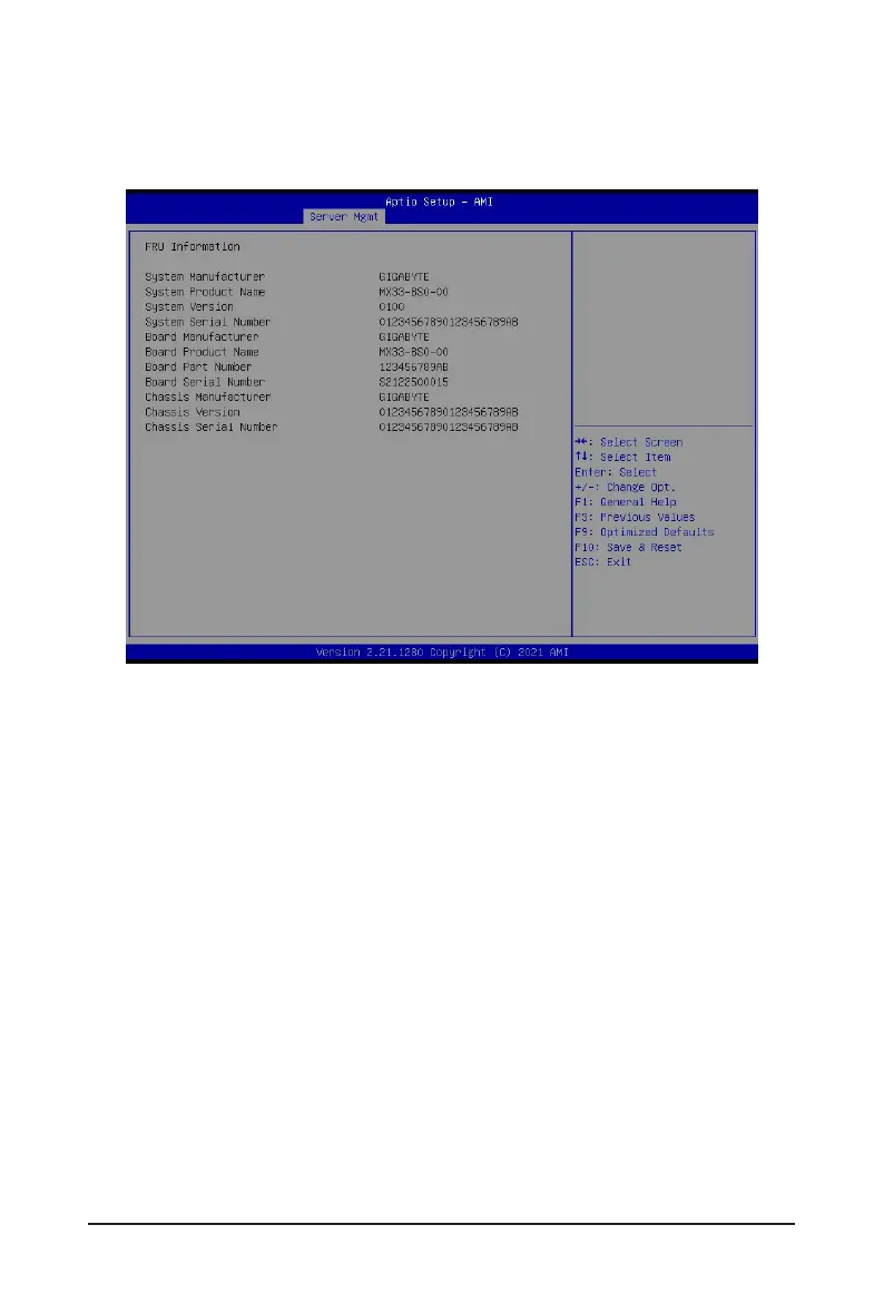 The FRU page is a simple display page for basic system ID information, as well as System product