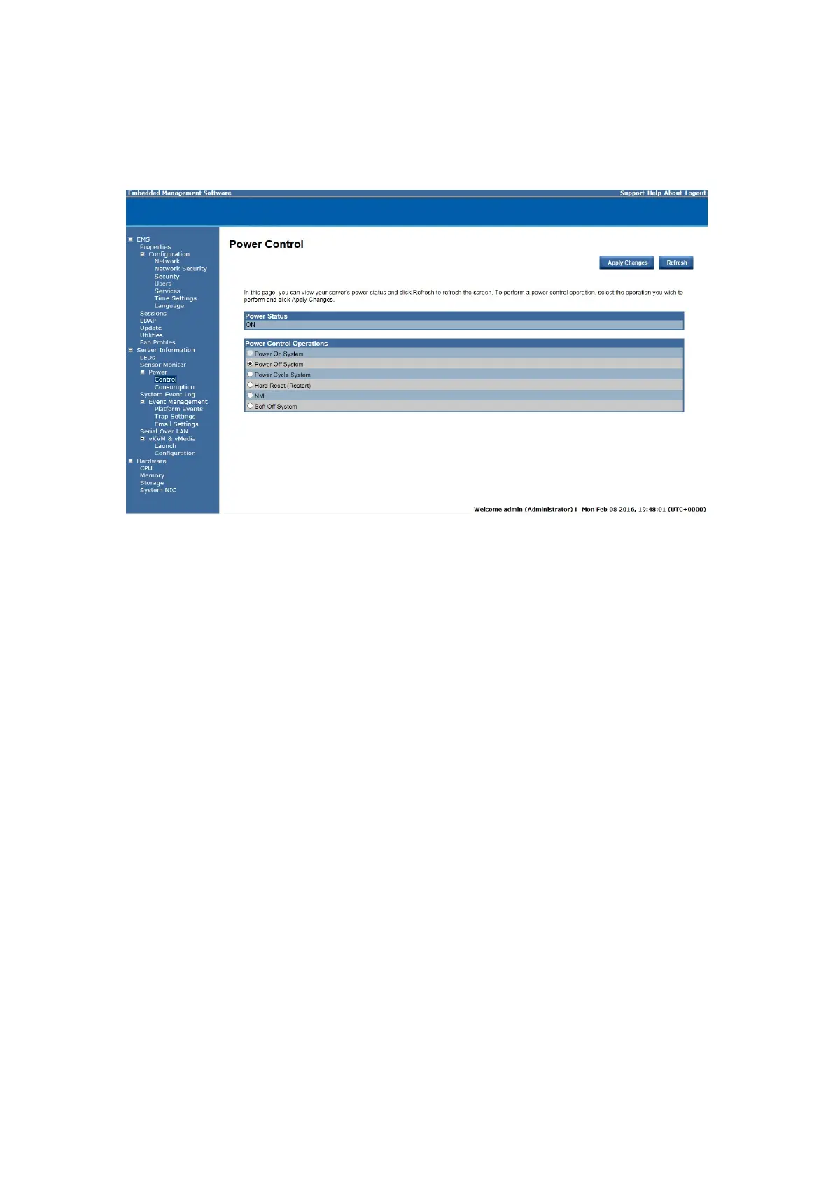 The Power Control allows you to power on/off/cycle, Hard Reset/NMI/Soft Off System the