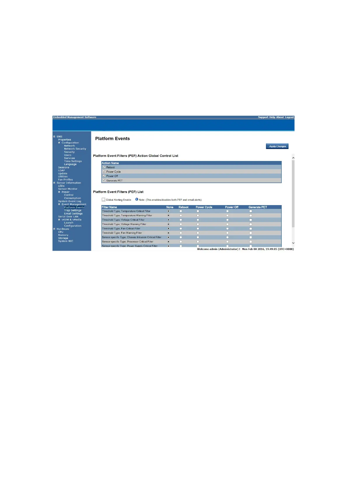 hardware-related event occurs. For each PEF, you can choose the action to be taken when a