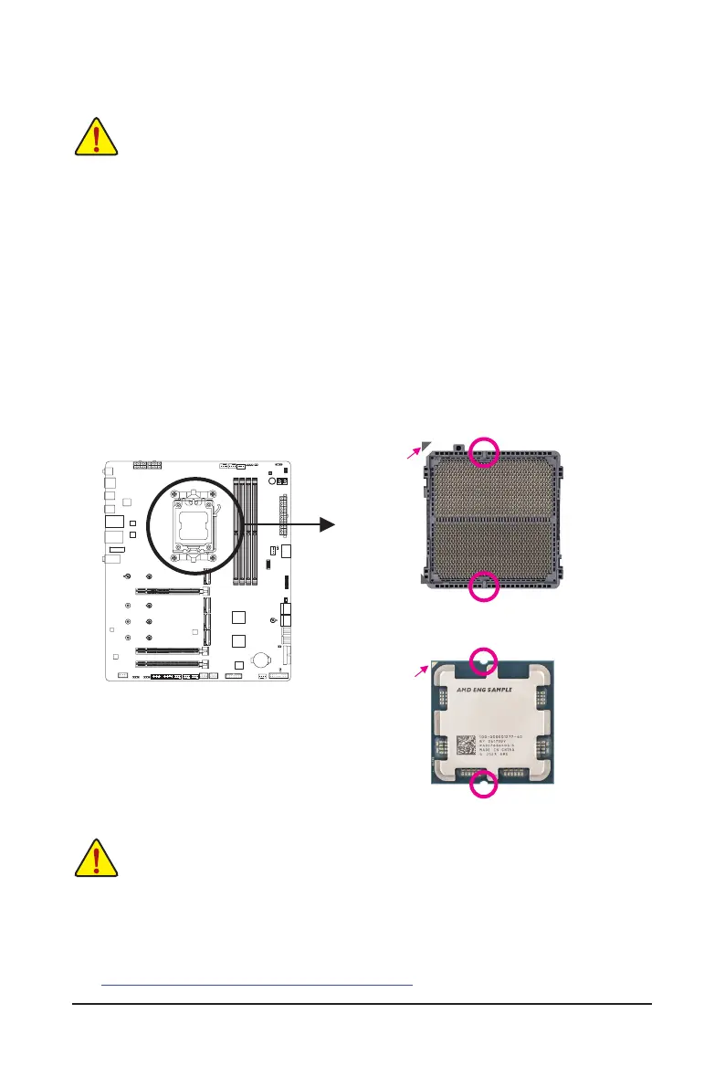 • 請確認CPU的第一腳位置,若方向錯誤,CPU會無法放入CPU插槽內(或是確認CPU兩側