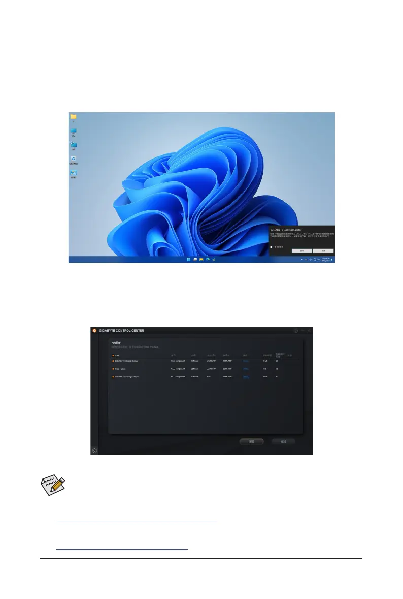 作業系統安裝完成後,在桌面右下角會出現詢問是否要透過GIGABYTE Control Center (GCC,技嘉控