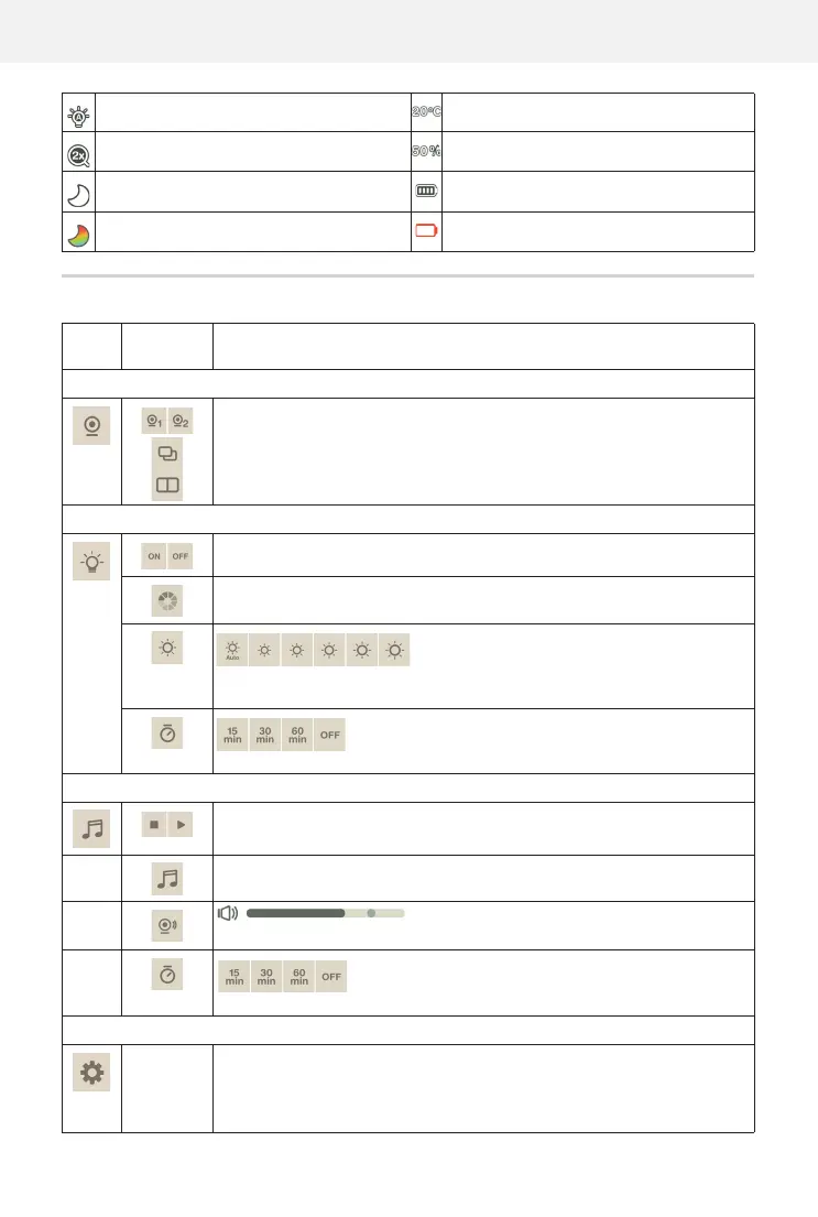 • Select to play all melodies, or play one of the 5 melodies or 5 soothing sounds.
