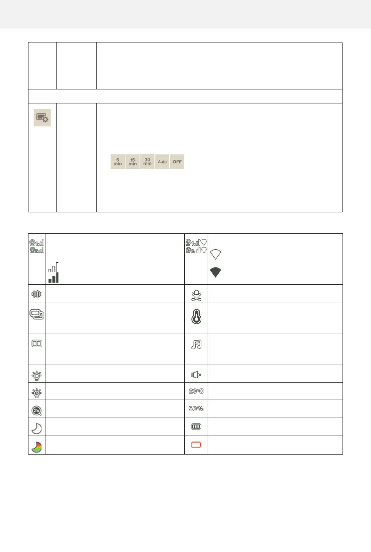 • Deactiveert de uitschakeling van het scherm of schakelt het scherm uit na 5, 15