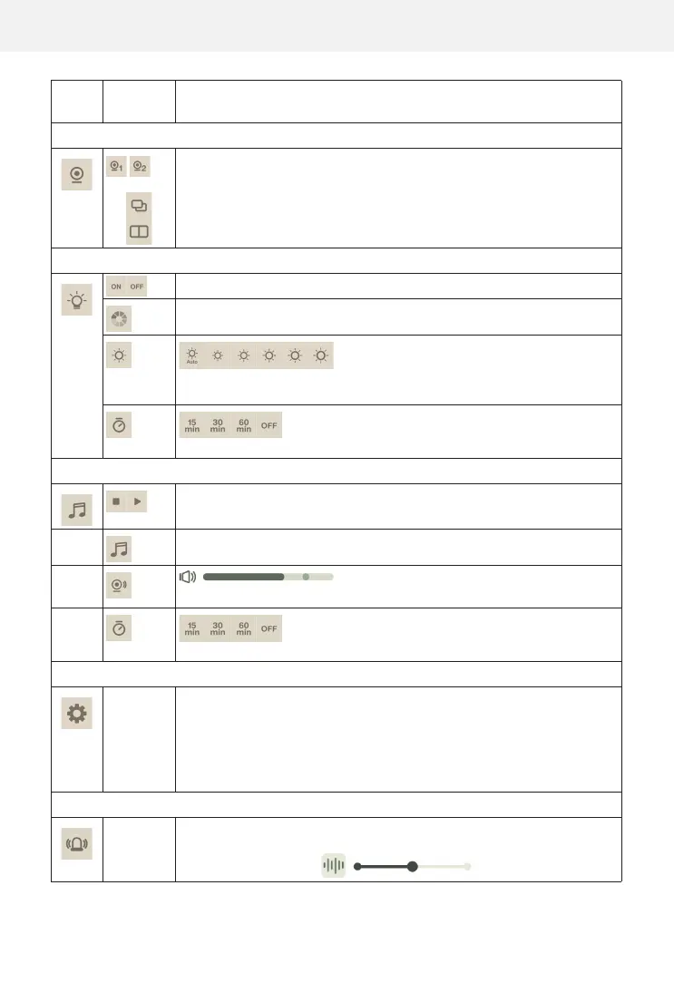 • Select to play all melodies, or play one of the 5 melodies or 5 soothing sounds.