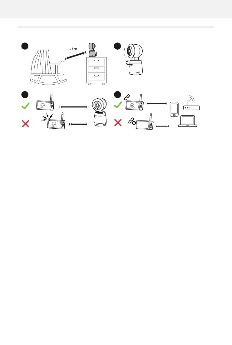 • Posizionare l'unità bambino e l'unità genitori a più di 1 metro di distanza l'una dall'altra,