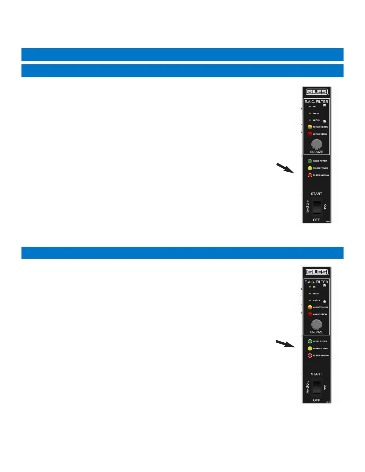 [FILTER MISSING] light will turn ON. Power to the fryer under the hood is shutdown until