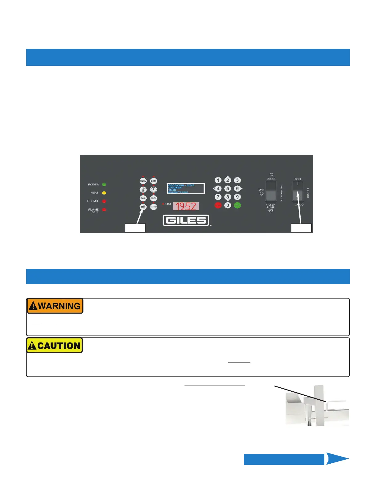 1. Be sure that main gas supply line valve is OPEN & that fryer gas valve handle is in the [ON]