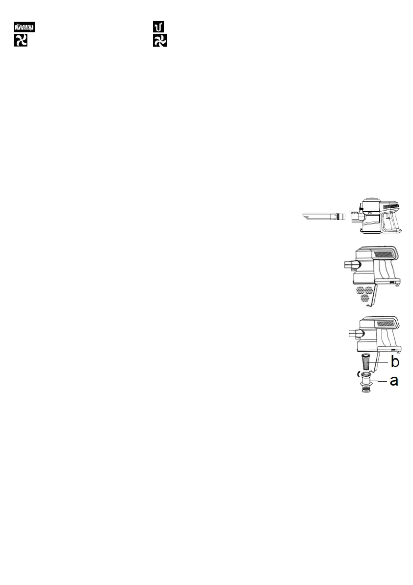 - Para la limpieza de los suelos, monte el cepillo (12) en el tubo de aluminio (9) y el tubo en la boquilla (5).