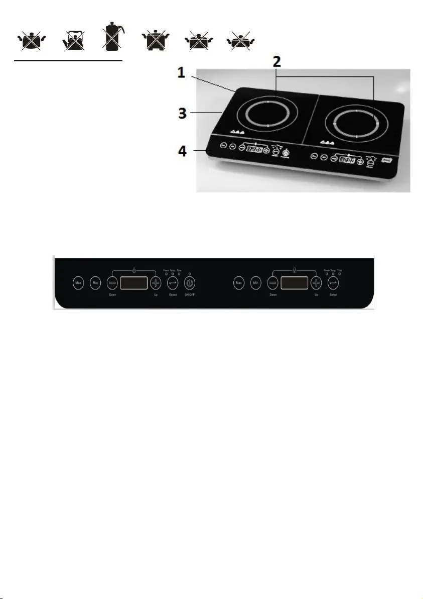 - Durante la cottura sul display appaiono la potenza selezionata ed il tempo rimanente.