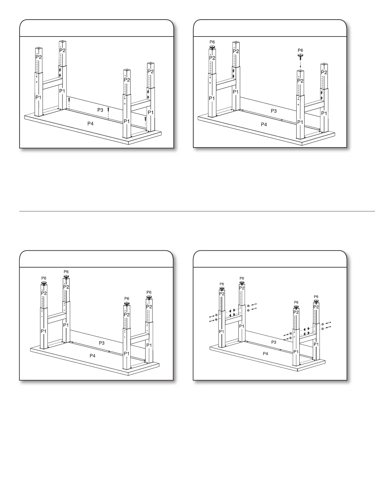 NOTE: Adjust this workbench upside down according to the illustrations. Be sure that the workbench top is at on the oor and the legs