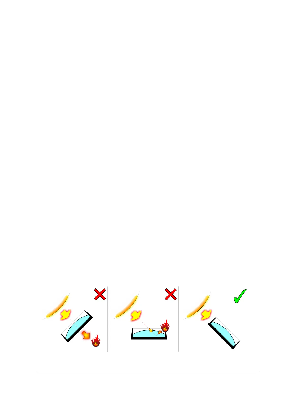 Do not point the front of the fixture towards the sun or other strong light sources.