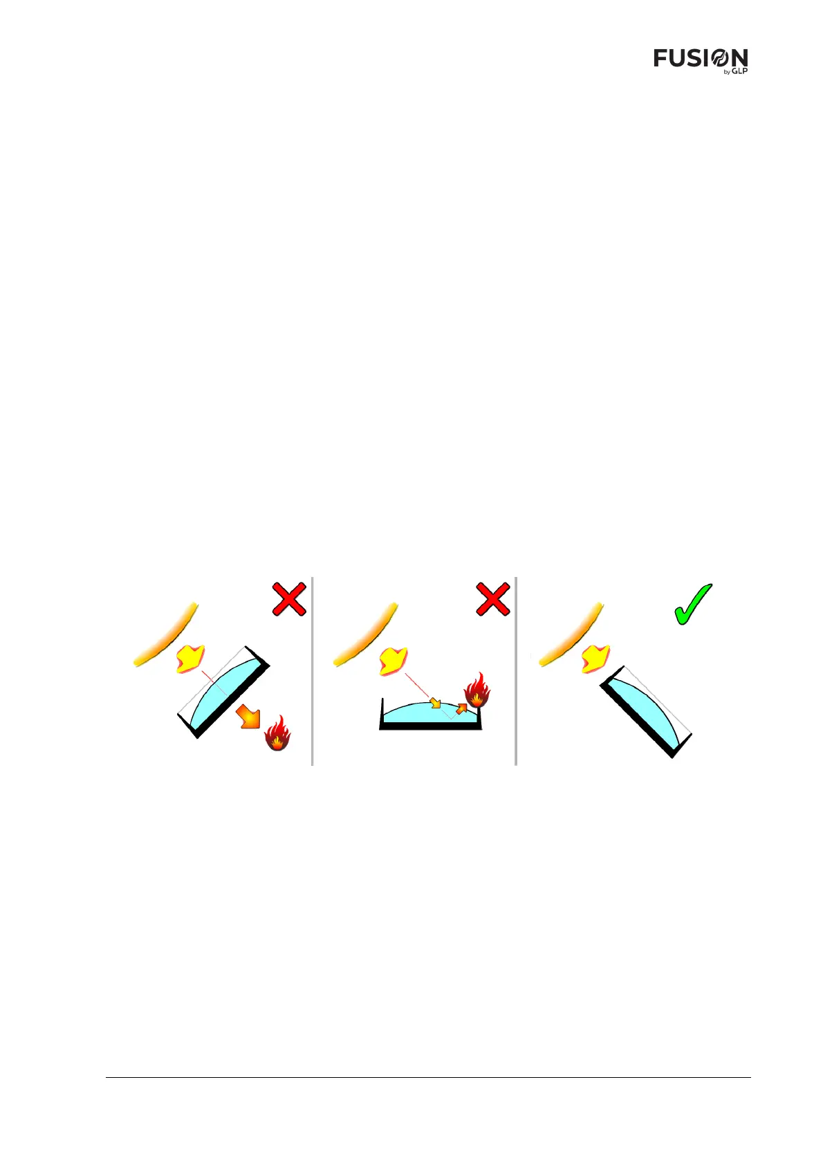 Do not point the front of the fixture towards the sun or other strong light sources. Strong