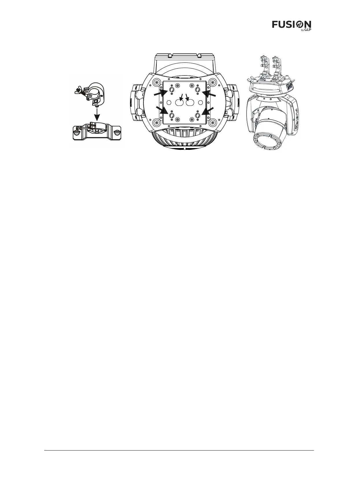 4. Attach the clamp to the truss or structure. Ensure that the head and yoke