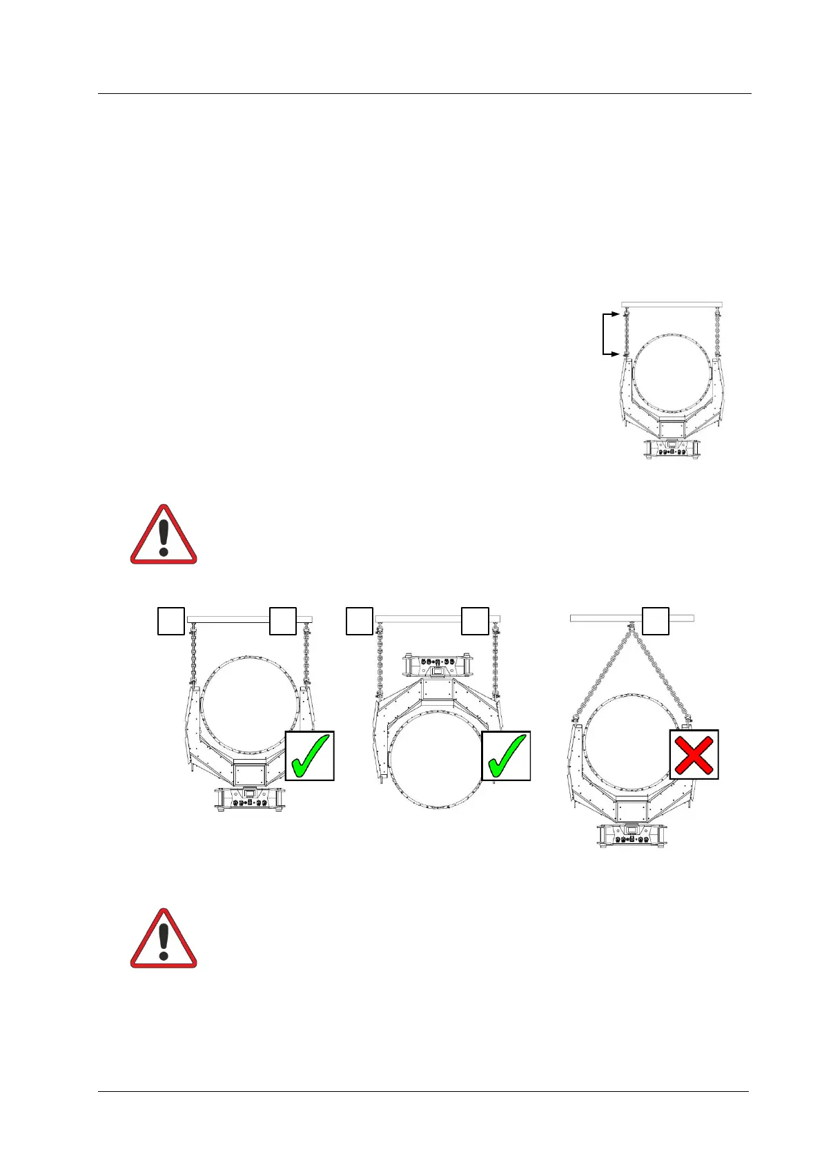 Warning! See Figure 1. When lifting the fixture, chains or cables must