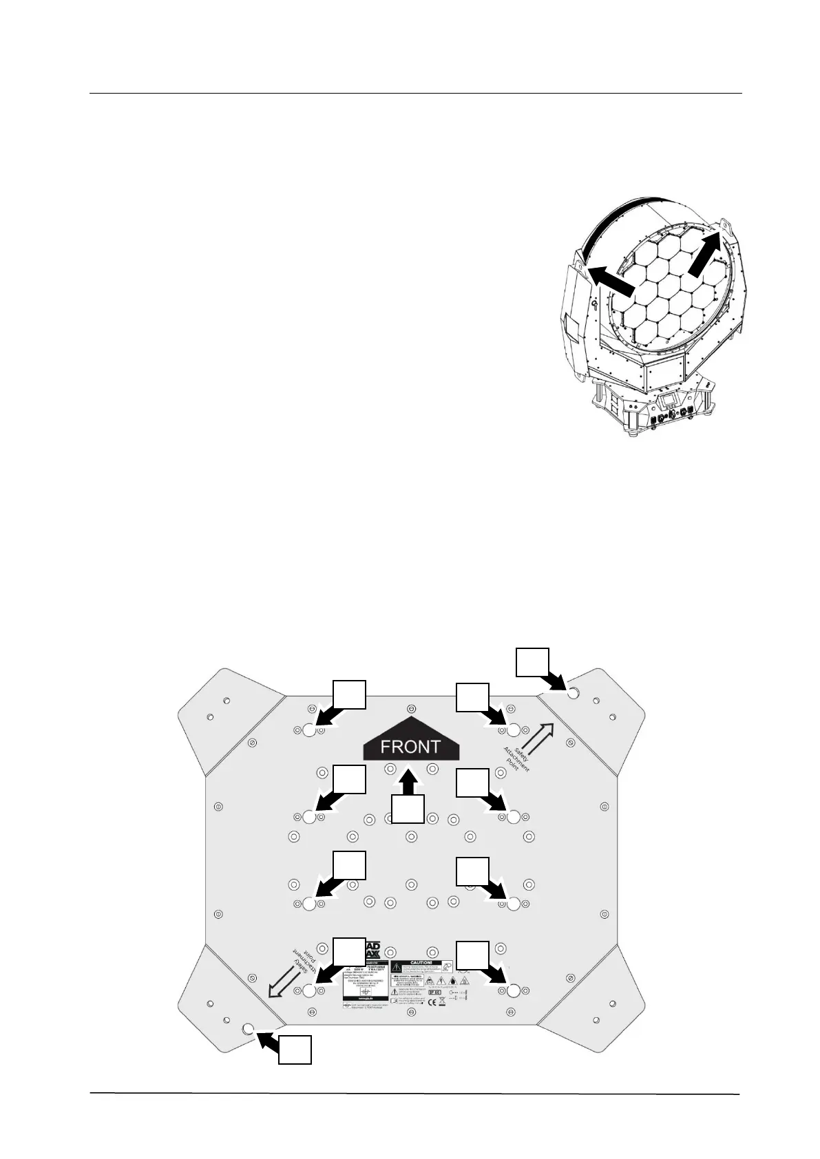 the head pans and tilts. Allow a minimum center-to-center distance of 600 mm / 24