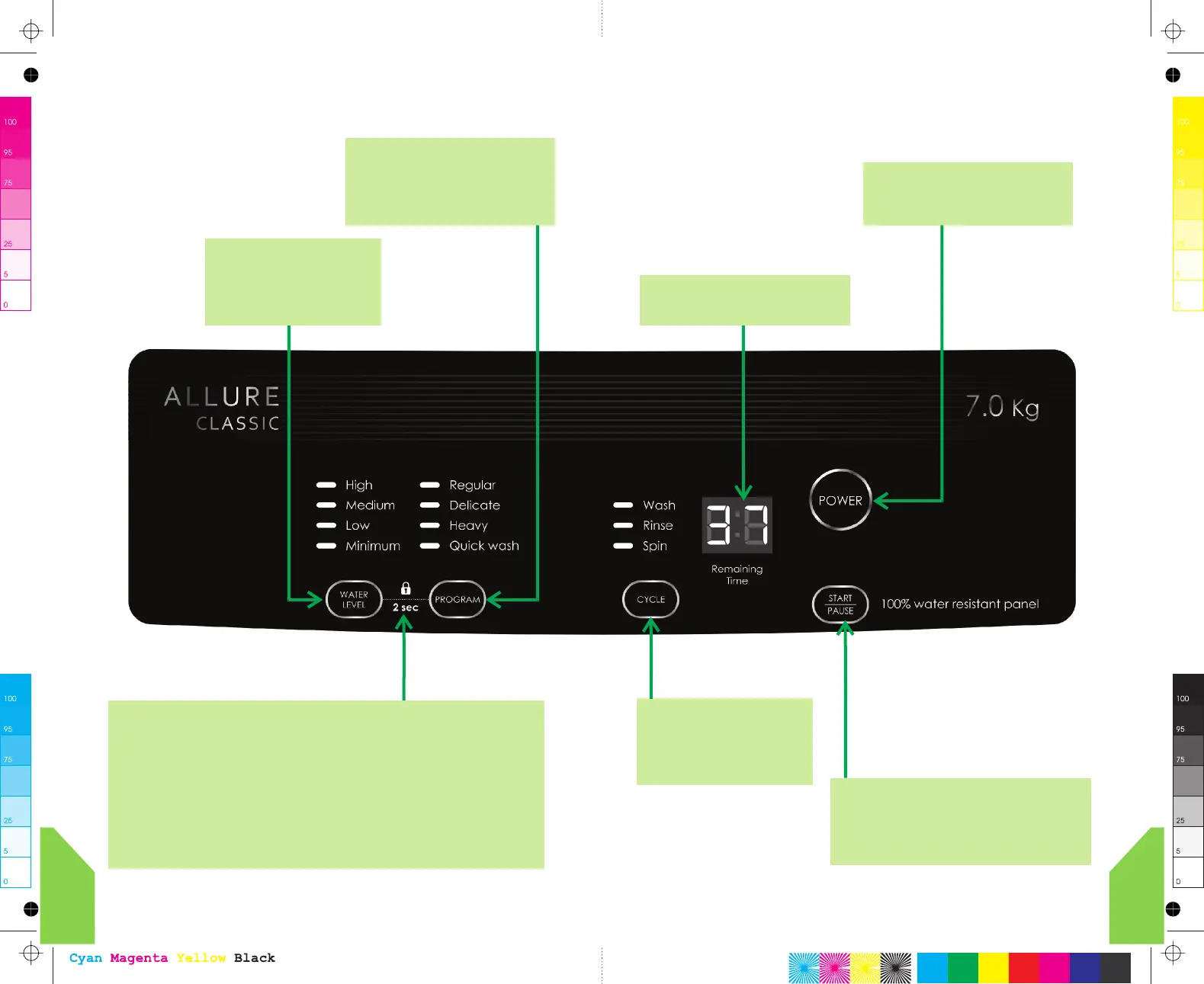 Child Lock: Child lock can be activated by pressing WATER LEVEL