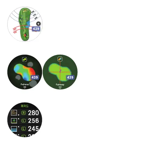 벙커, 나무, 물 등의 해저드 정보를 제공합니다.