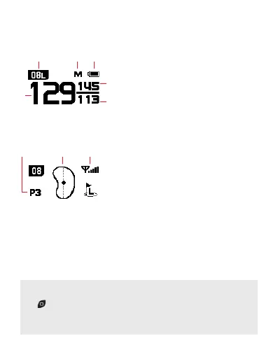 • 按 键, 会提示果岭至中心 (Center)的剩余距离