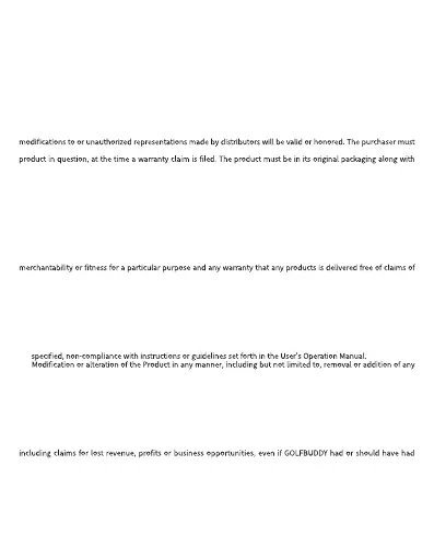 third parties by way of infringement or the like. GOLFBUDDY disclaims all express and implied warranties applicable.