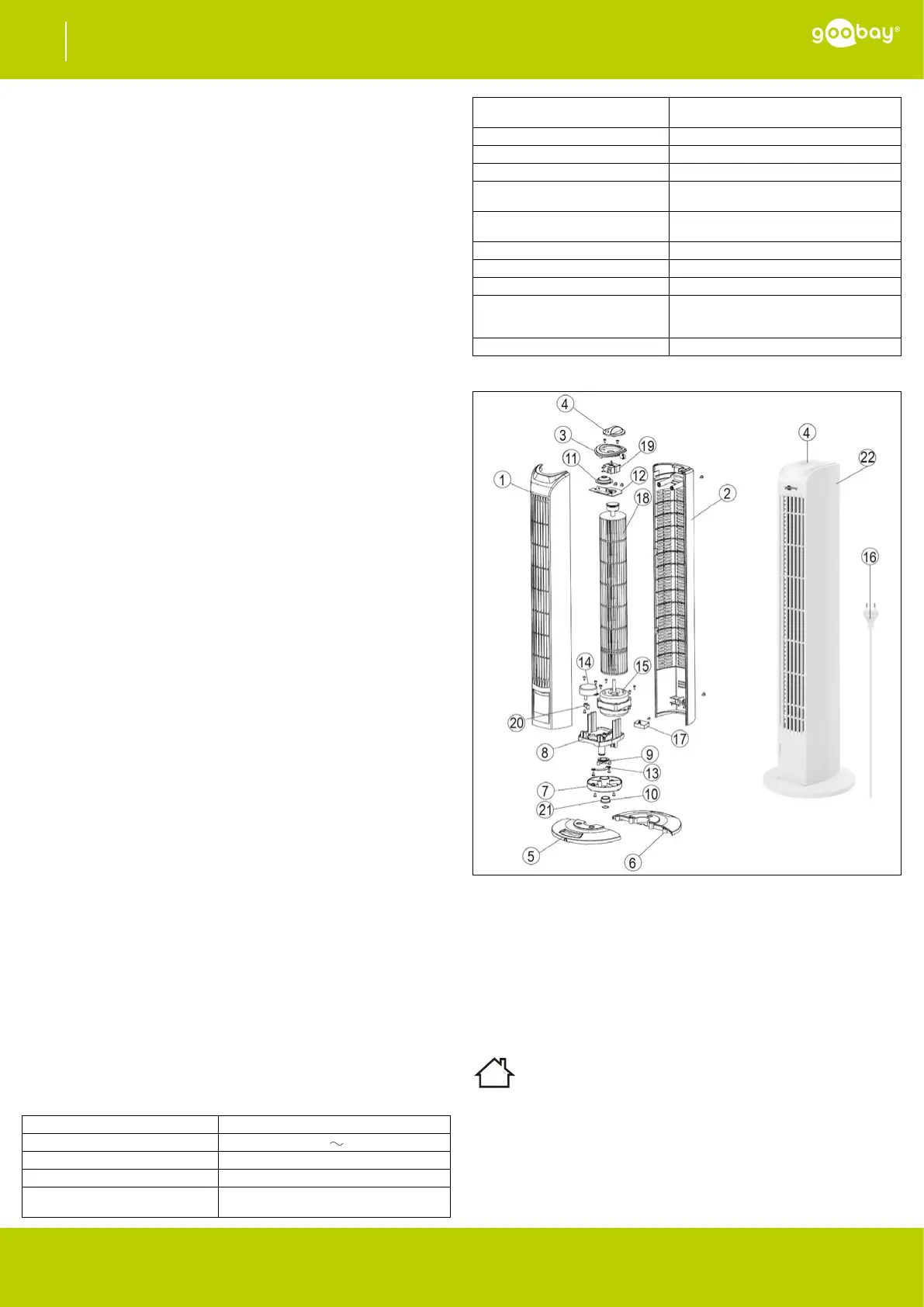 Het product is een oscillerende, stille kolomventilator met stroomkabel.