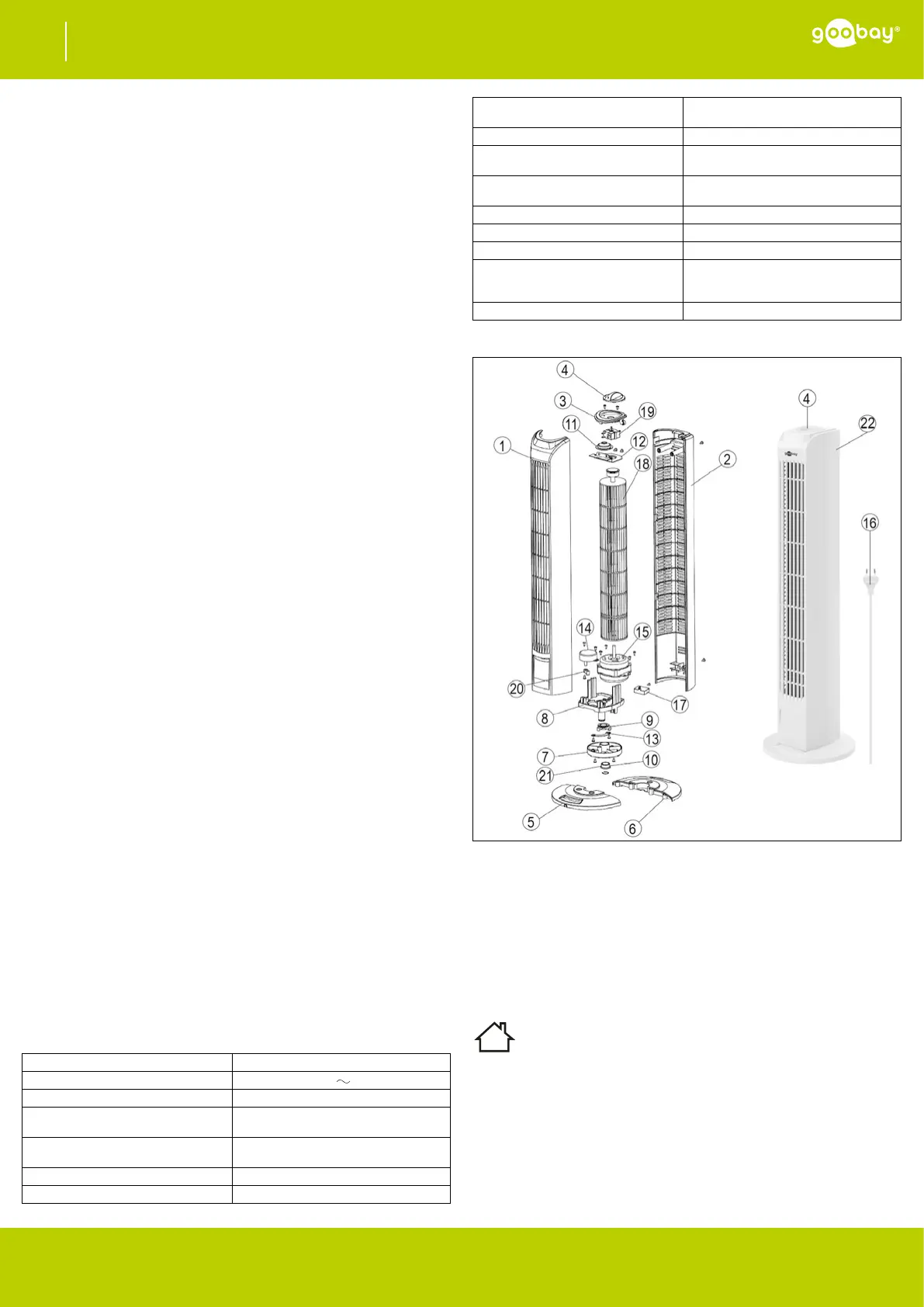 Il prodotto è un ventilatore a colonna oscillante e silenzioso con cavo di ali-