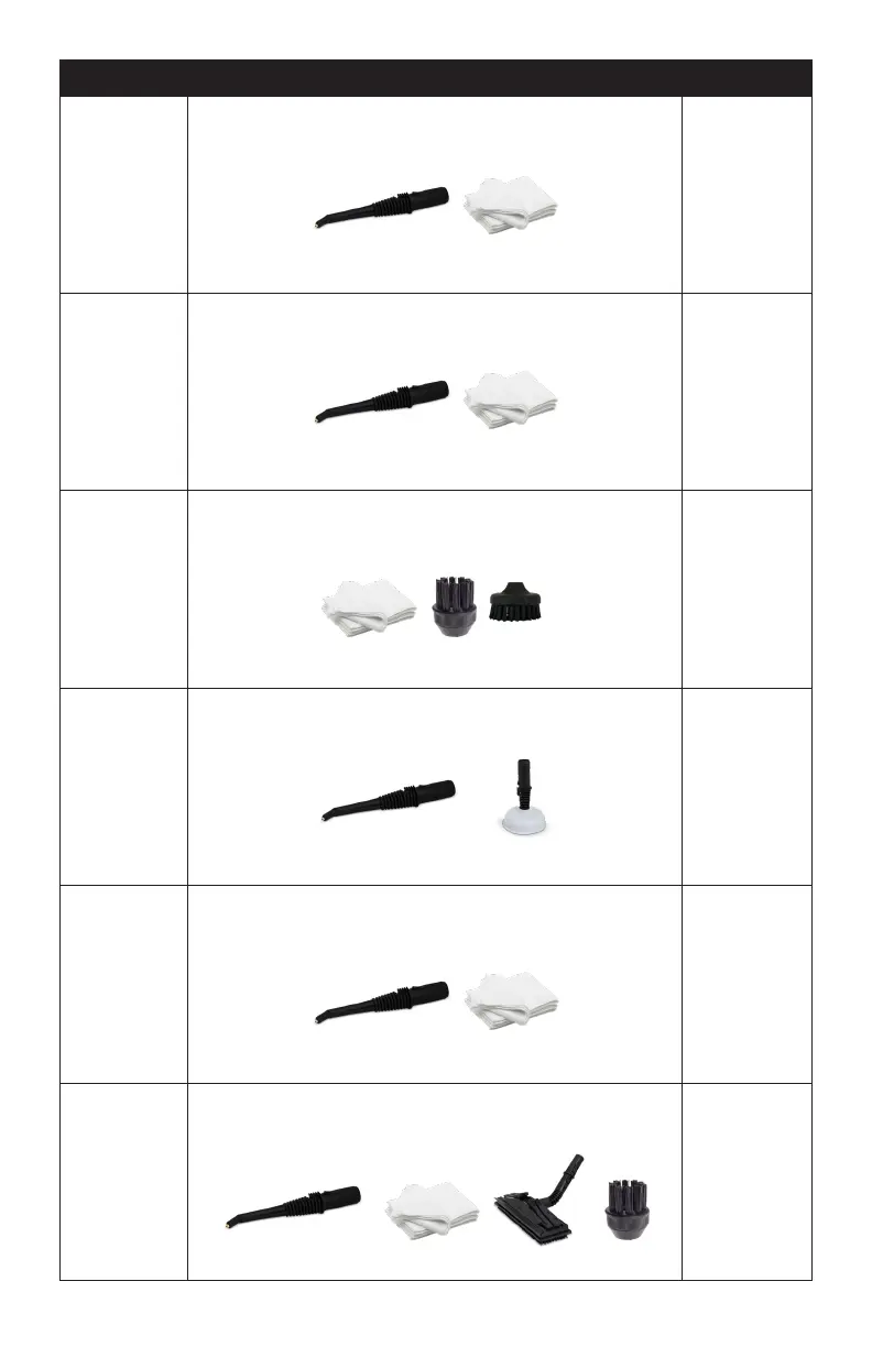 Clean larger surfaces with the large rounded brush. Use the jet nozzle