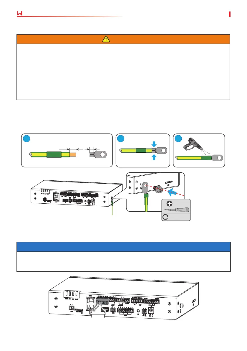 Step 4 Secure the PE cable to the grounding point of the EzLogger with the M4 screw.