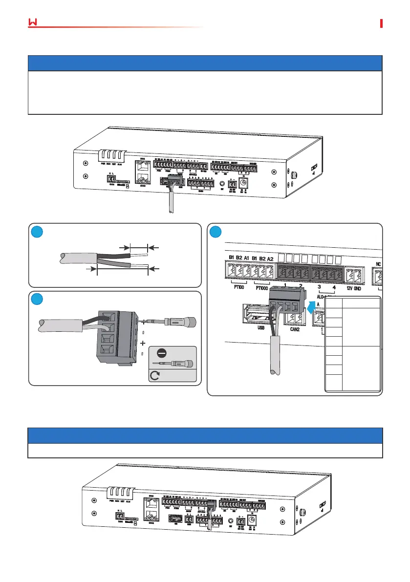 • Connect the remote shutdown device to AI1+ or AI2+ port and 12V Output port of the