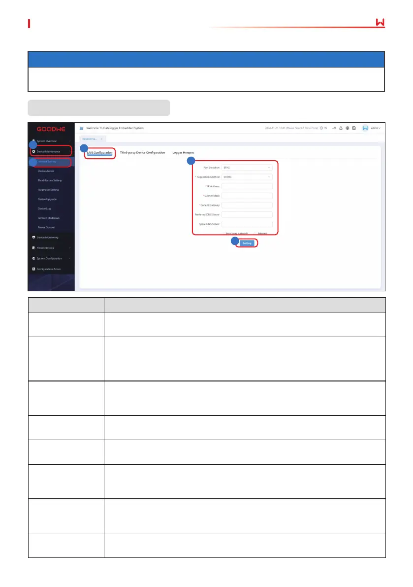 Set the default gateway of the EzLogger. Set the parameter based on the