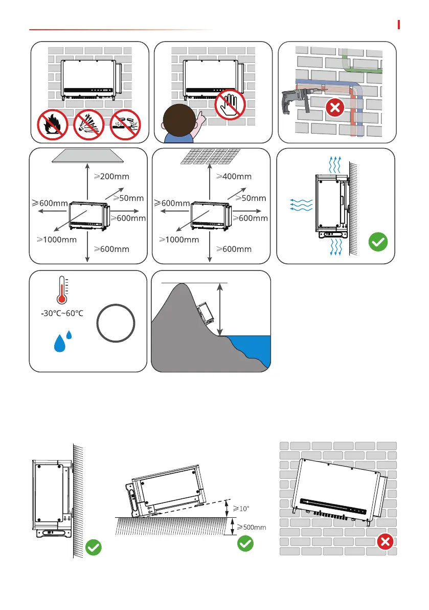 • Install the inverter vertically or at a minimum back tilt of 10 degrees.