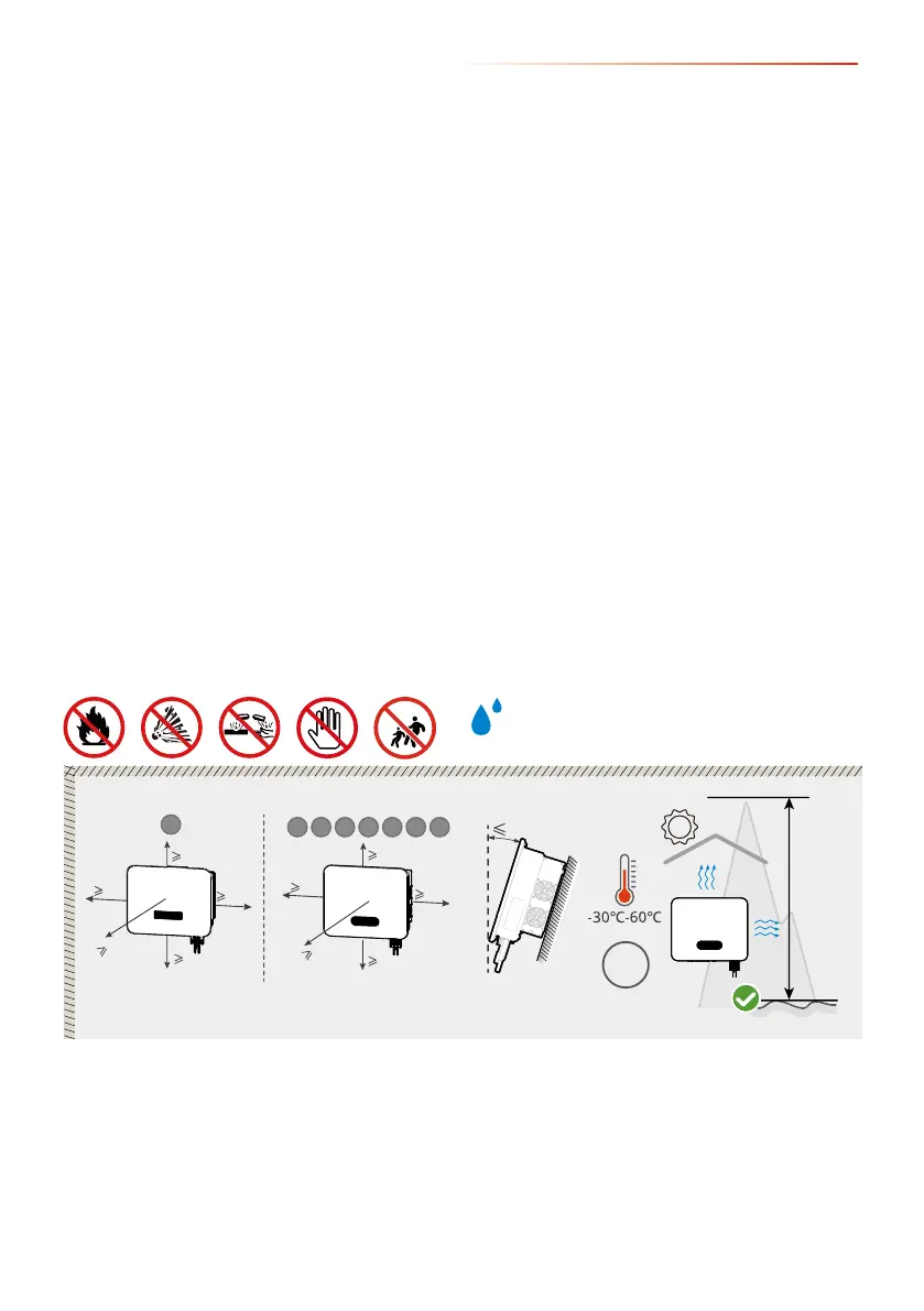 • Install the inverter vertically or at a maximum back tilt of 15 degrees.