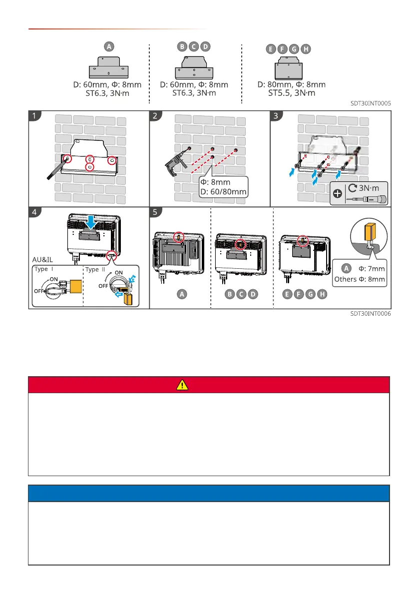 • Disconnect the DC switch and the AC circuit breaker of the inverter to
