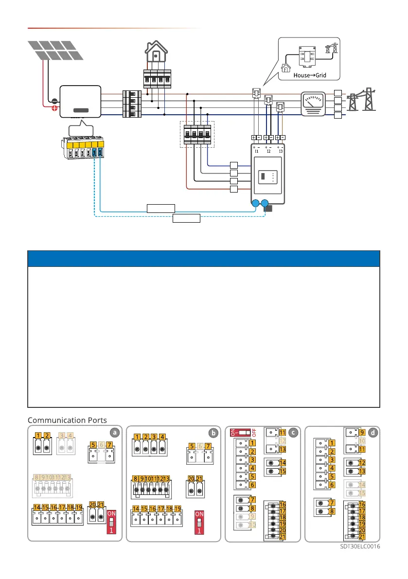 • When connecting RS485, meter or DRED communication cables, use