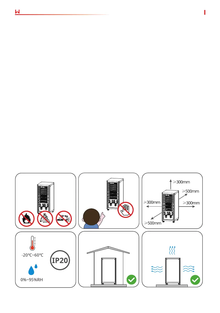 4. The Ingress Protection Rating is IP20, please install the inverters indoors.