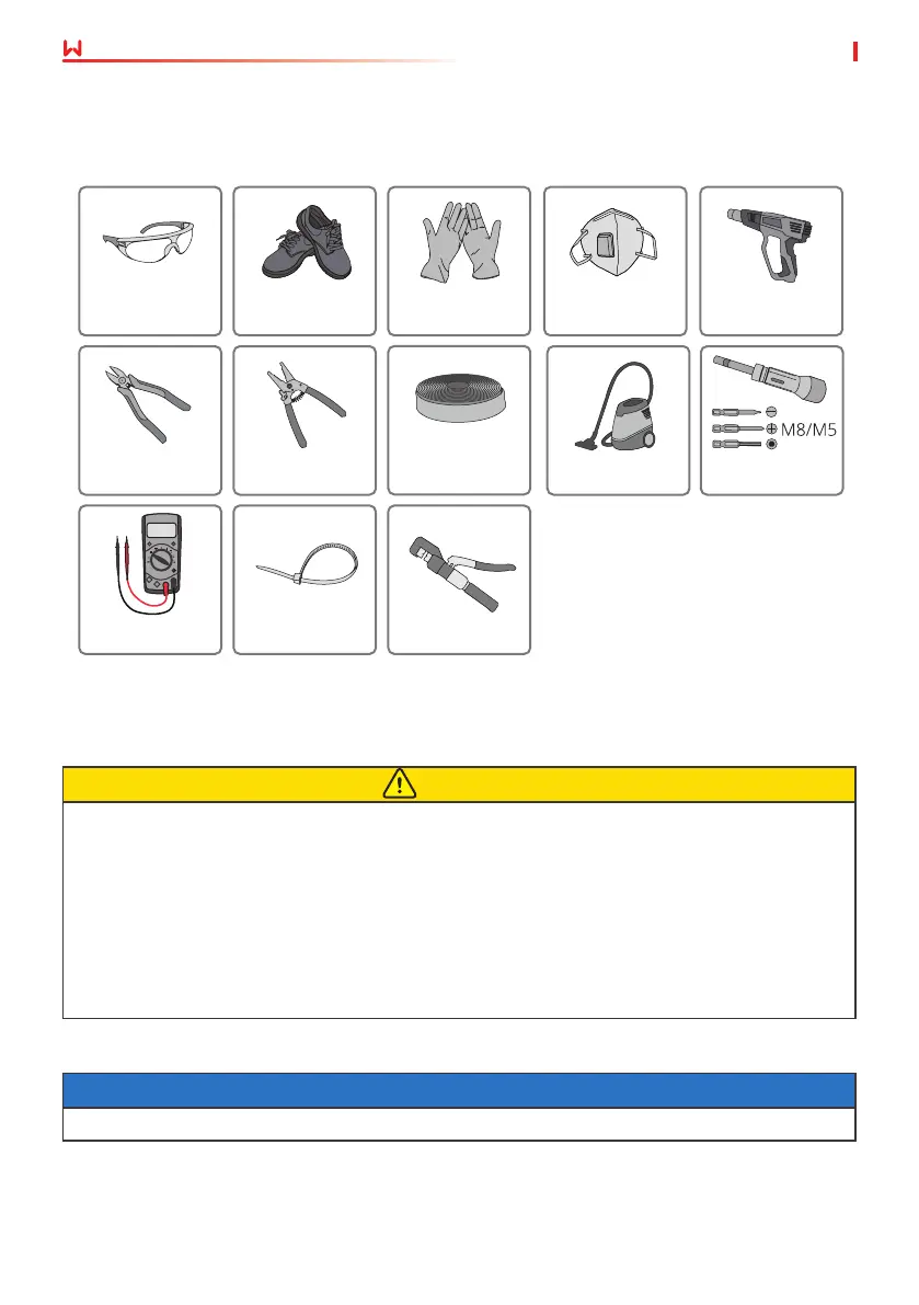 The following tools are recommended when installing the equipment. Use other auxiliary tools
