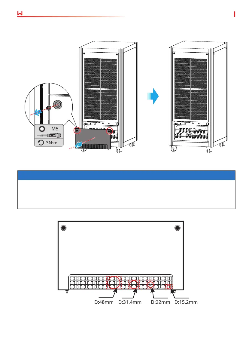 required to cut a hole according to the outer diameter of the cable. Make sure that the size