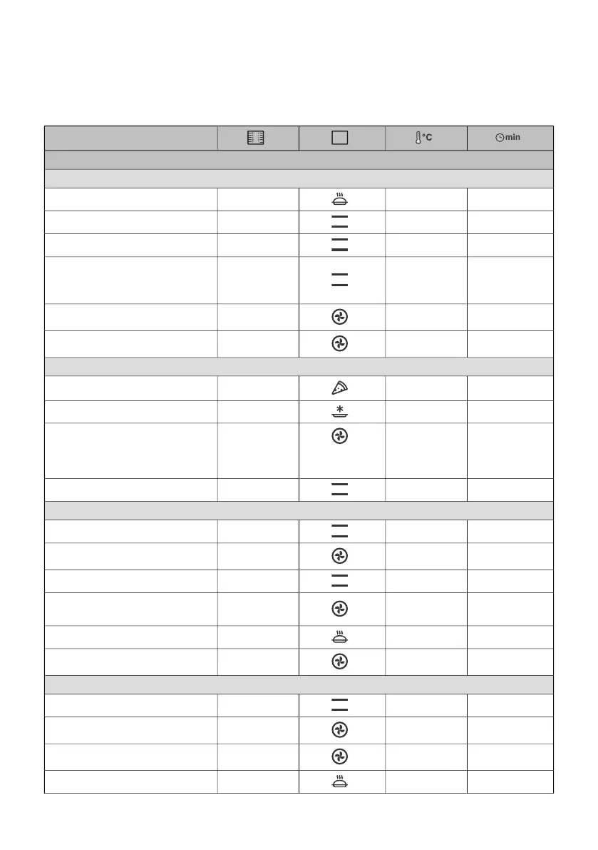 NOTE: Dishes requiring a fully pre-heated oven are indicated with a single asterisk * in the table.