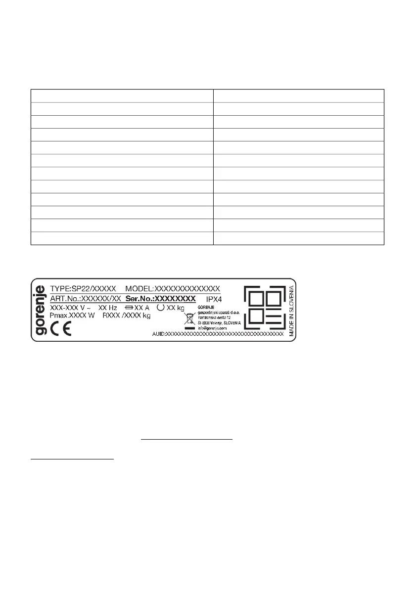 Rating plate with basic information about the dryer is located on the inner side of the dryer door (see