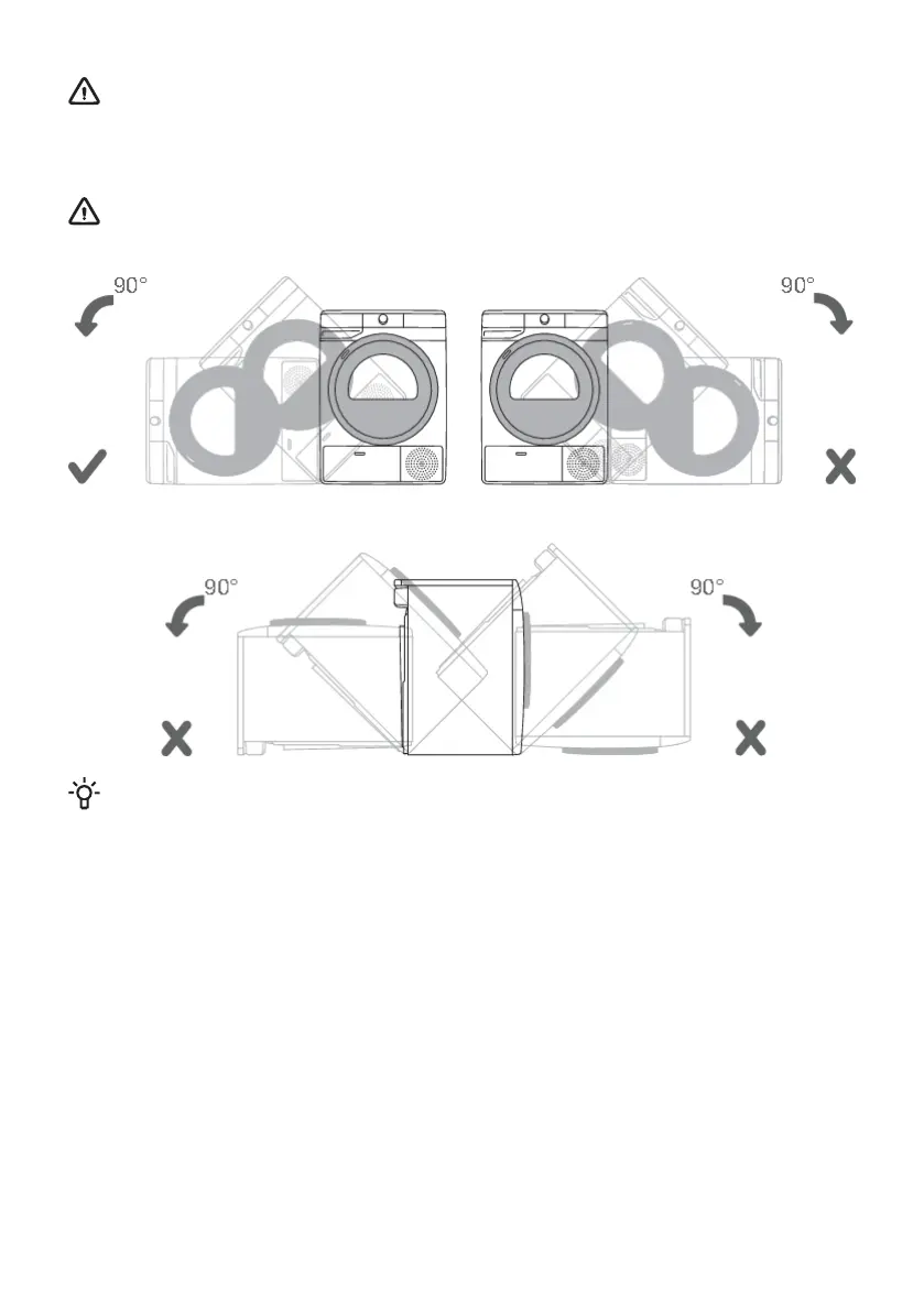 If the dryer has to be laid down on one of the sides during transport or servicing, place it with its