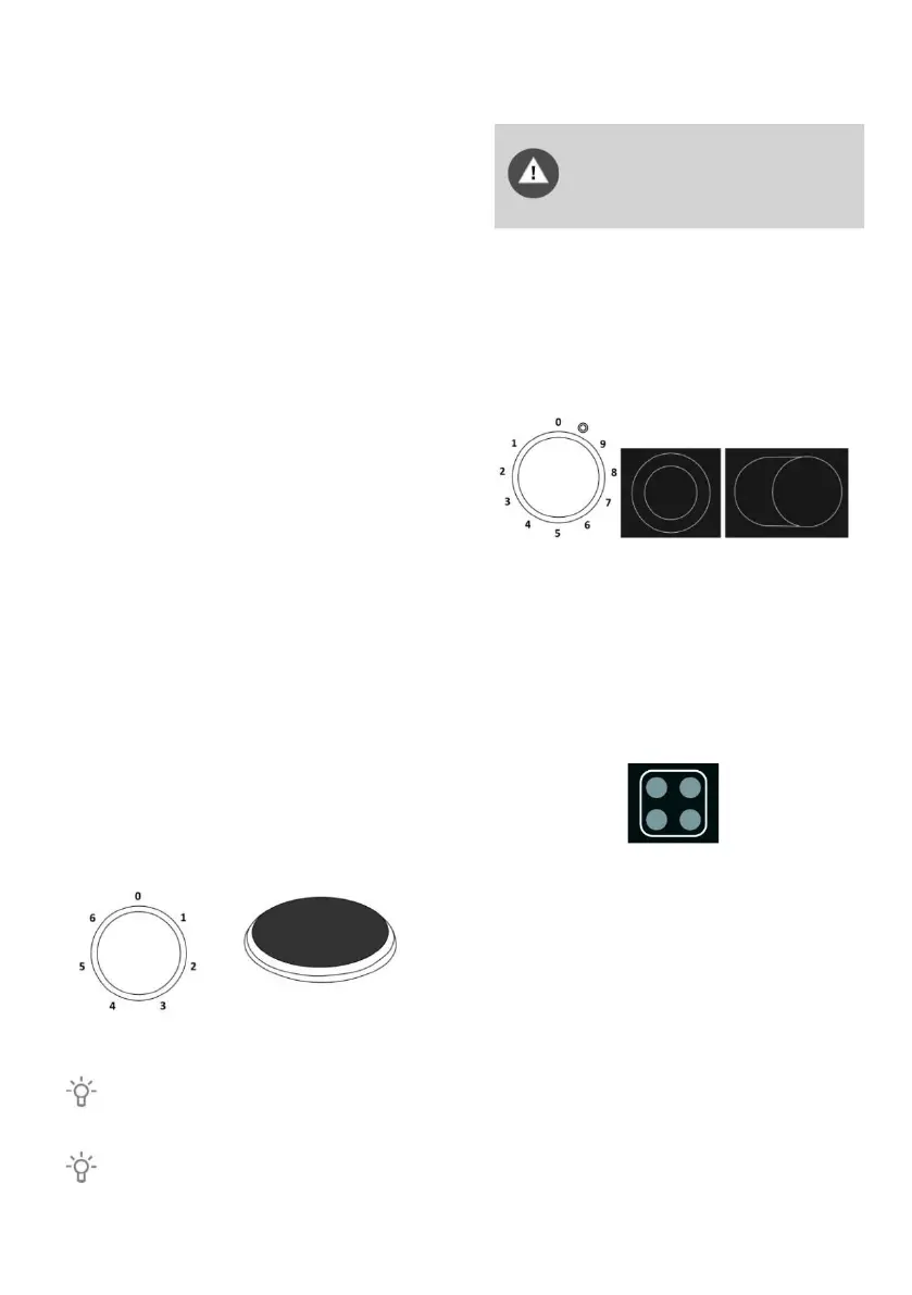 Rotate the knob to switch on the cooking zone.
