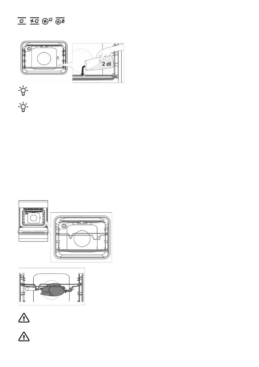 • When preparing food, a lot of steam is formed inside the oven, which is drained through the chimney at the back of