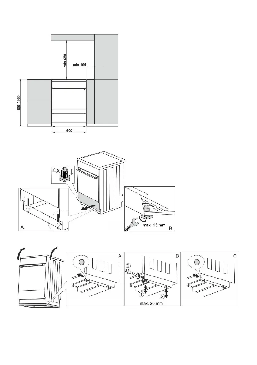 B) The height of the cooker is 900 mm. Depending on the model, you can adjust the height of the appliance from 850