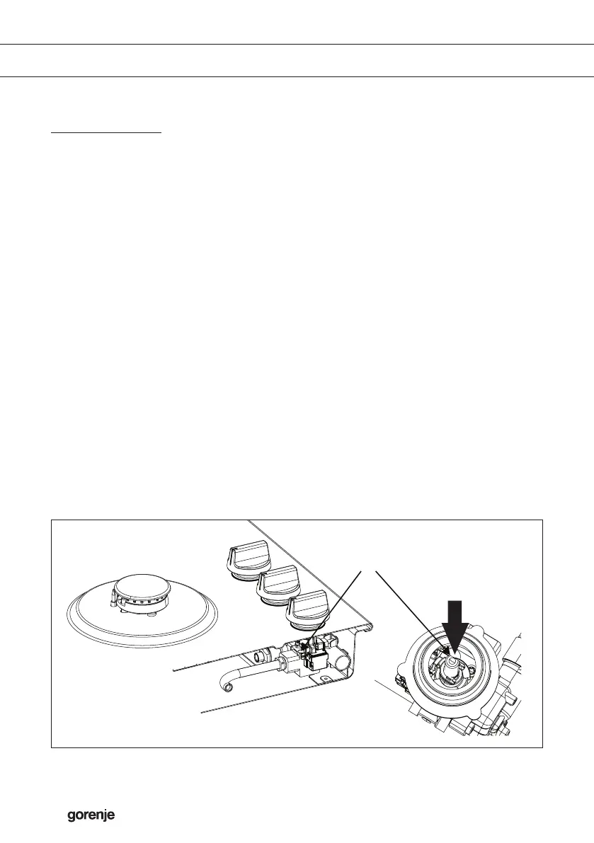 The by-pass screws can be reached from the top of the hob when the knobs are removed
