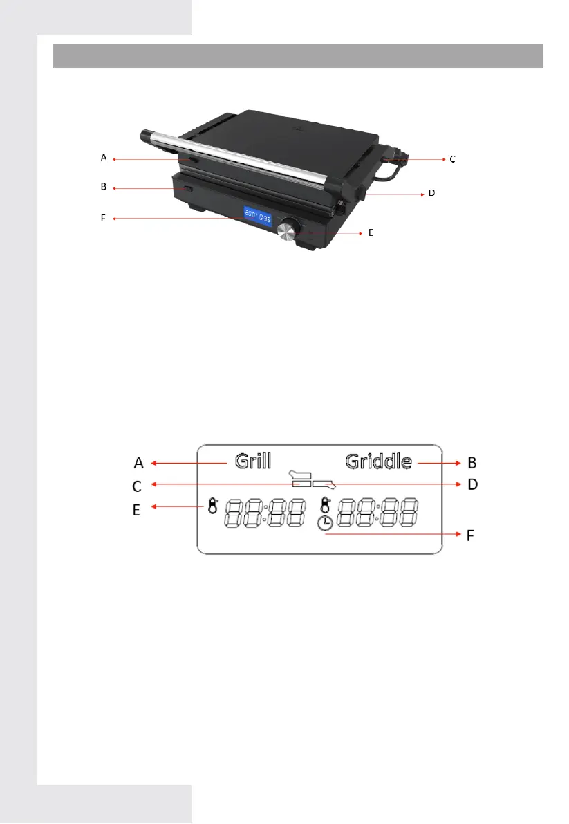 D. Gornja ploča roštilja kada je otvoren 180 stepeni