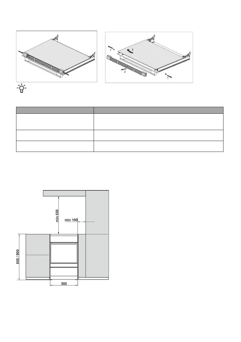 APPLIANCE PLACEMENT (mm) (depending on the model)