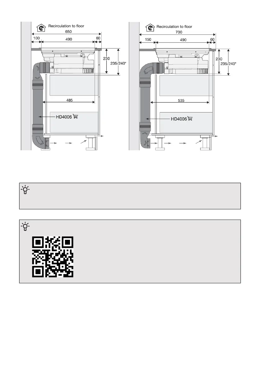 • The walls and the worktop surrounding the appliance must be heat resistant up to at least 105 °C.