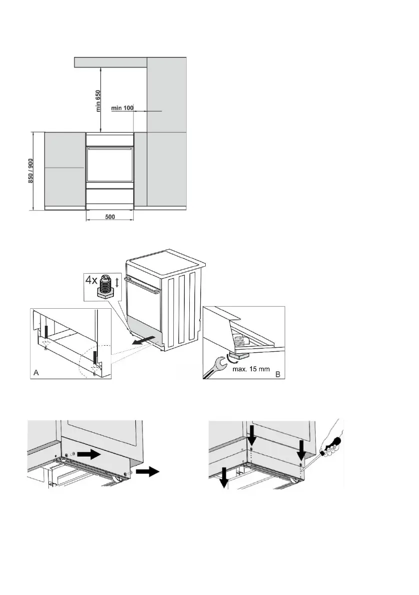 APPLIANCE PLACEMENT (mm) (depending on the model)
